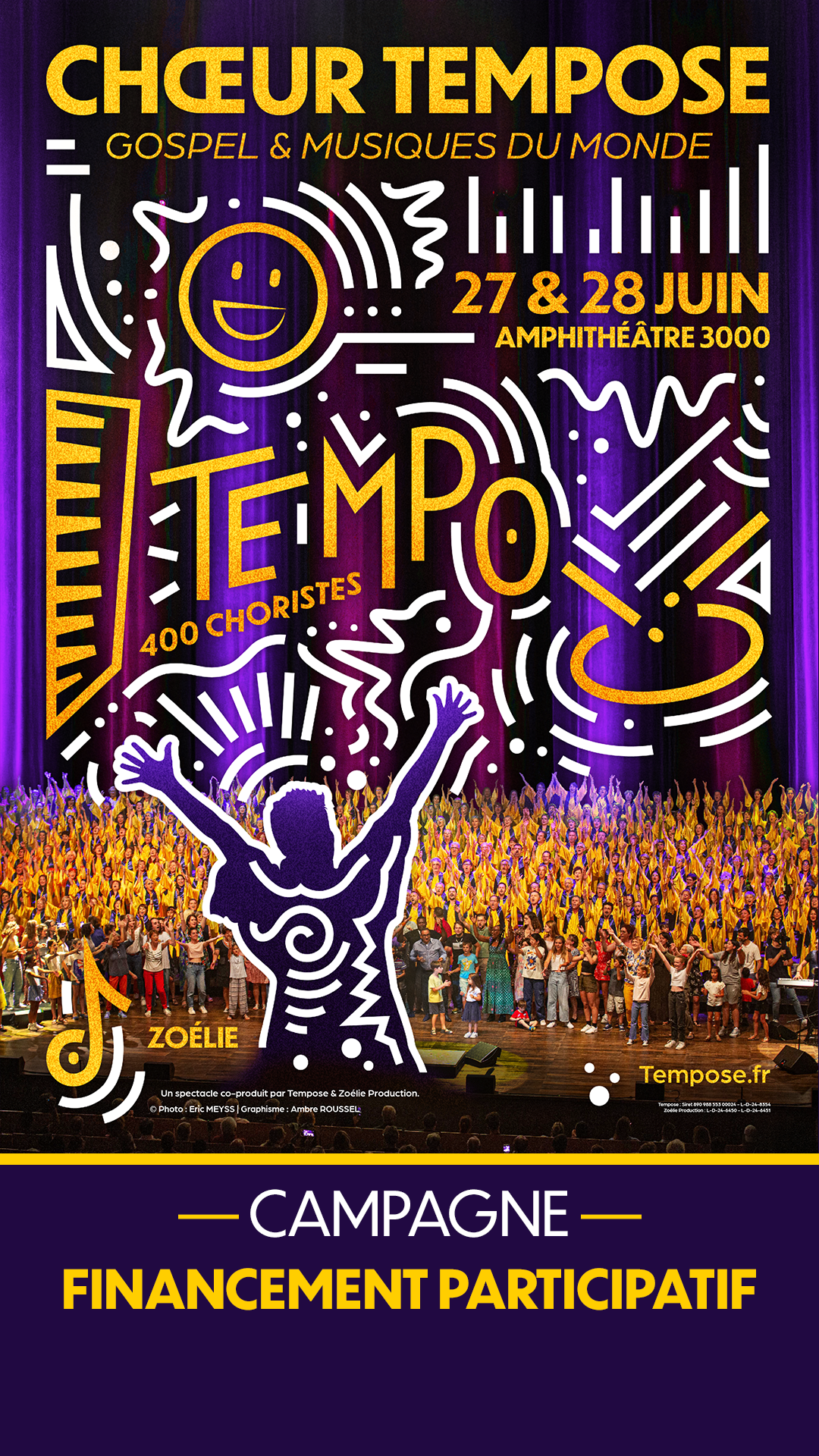 Tempose lance une campagne de financement participatif sur le site HelloAsso pour contribuer à la création du nouveau spectacle du Chœur Tempose : TEMPO !